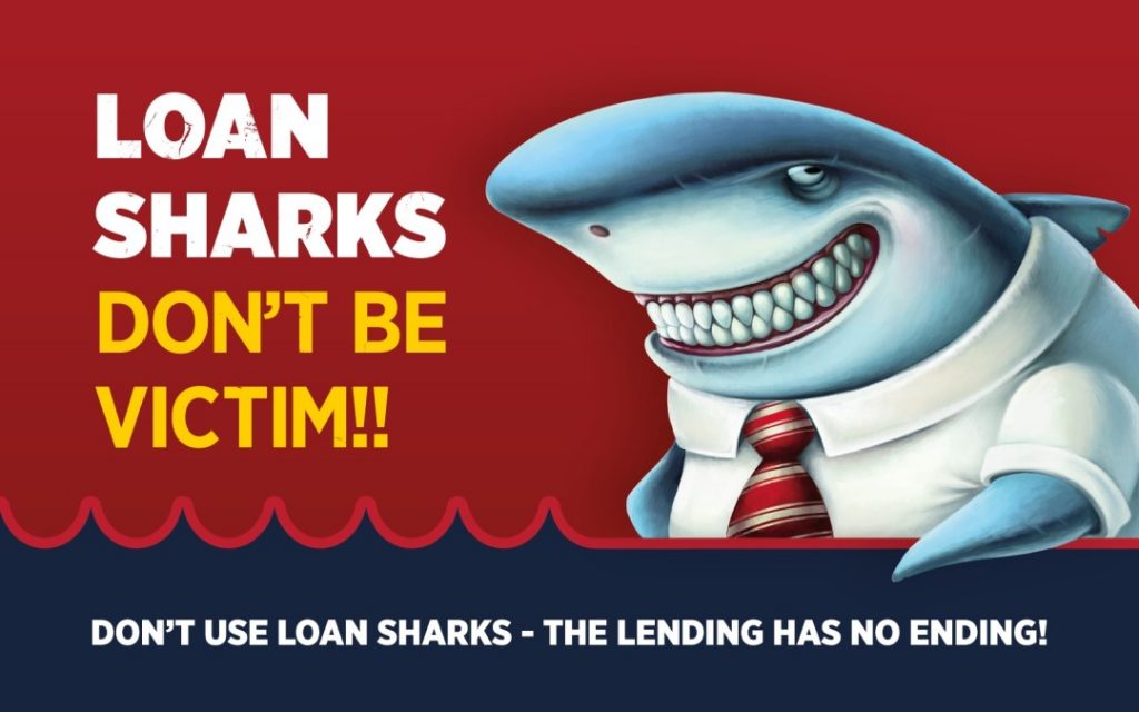The Illegal Money Lending Team have the following 4 questions to help you know if you have met a loan shark.Question 1. Has someone lent you money at your door and are charging you a lot of interest?Question 2. Have you been threatened when you couldn’t pay?Question 3. Has someone taken your bankcard to look after until you have paid what you owe?Question 4. Does the money you owe keep getting bigger even though you are making payments?